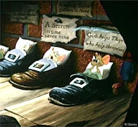 Ben and Me later appeared on the Disneyland/Wonderful World of Color television programs, and inspired a few merchandise tie-ins, most notably books and comics. Amos was clearly a member of a new species of Disney mice, all very similar in design, that began with Cinderella’s supporting characters, and frequently showed up in other products during the 1950s, including magazine stories and record albums.Nearly thirty years later, Disney would reinvent Benjamin Franklin again, in another animated, but altogether different incarnation. In 1982, Franklin and co-host Mark Twain began telling the dramatic story of the American Advenute through music, film and audio-animatronic figure-filled vignettes. The AA for Franklin, at the time one of the most sophisticated and complex created, became famous in and of itself for ascending stairs and walking across a set piece. Imagineer Dave Feiten spent a week walking and practicing with a cane, in order to learn the movements and in turn program the AA for the scene that had Franklin interacting with Thomas Jefferson.