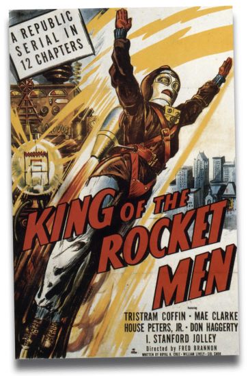 Stevens drew inspiration for the Rocketeer primarily from movie serials and pulp magazine characters. Visually, the Rocketeer outfit and helmet is wholly derivative of designs created for a series of Republic Pictures "Rocket Men" serials released throughout the 1940s and early 1950s. The two Rocketeer storylines, (The Rocketeer and Cliff's New York Adventure), are very direct homages to 1930s pulp. The Rocketeer indirectly featured characters from the popular Doc Savage stories, while Cliff's New York Adventure guest starred a thinly disguised version of the Shadow. Due to potential copyright issues, those elements could not be carried over into Disney's feature film.