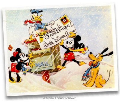 The vintage 1930s look of the characters is evident in the Studio's Christmas card from 1936. Walt's signature had yet to evolve into the stylized logo that most are familier with today.