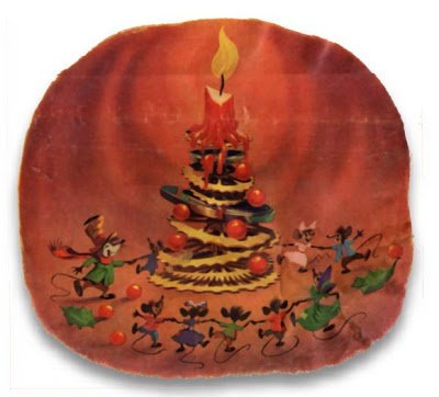 As you can see, the illustrations that accompanied the story are simply wonderful. Cedric and his fellow mice are clearly distant cousins to both Cinderella’s loyal friends and Amos from Ben and Me. I especially like the story’s final illustration where Cedric and his family all dance around a Christmas tree--made of watch gears!