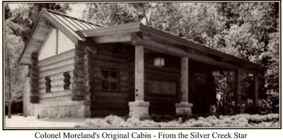 Even if Ol' Georgie was "a few logs shy of a full load" in the common sense department, he was nevertheless cunning. When he approached the Wilderness Lodge, he presented himself not as a prospector, but as a cook. The frontier, at this time, did not have a surplus of chefs, so such skills were highly valued. The Lodge had become a gathering place for artists, naturalists and others, and Jenny thought Ol' Georgie would be a welcomed addition. She offered Ol' Georgie a room in the Lodge in exchange for his services. He responded, "Now, Miss Jenny, I reckon the best place fer me is yonder, by that thar stream. Thataways I won't bother any of your guests an' I'll be closer to the trout. I kin clean the pans easier thataways, too.