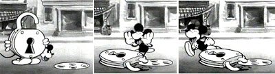 Some time back, Image Entertainment released two volumes of the early Iwerks cartoons. The 58 shorts included are in pristine condition, taken from original negatives. Fiddlesticks is on the first volume, and they make mention of the “Mickey appearance” in the liner notes. I own both these volumes and they are a definite must-have. They are also currently a steal on Amazon at a mere $9.99 each.Leonard Maltin had this to say about the Mickey clone in Fiddlesticks in his animation history bible Of Mice and Magic: