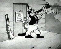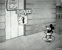 It is no small coincidence that the Mickey’s fellow mice bear striking resemblances to similar rodents from Disney’s earlier silent endeavors. The film is a remake of sorts of Alice Rattled by Rats, produced in 1925, and the character designs do not stray far from that short’s original cast. And these “supporting mice” contribute much of the cartoon’s content. Mickey’s antics are for the most part focused on a player piano and the typical cartoon gags that that instrument usually inspires. While somewhat mundane overall, the film’s shortcomings are easily forgiven in relation to its more relevant historical context.