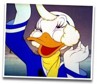 One final odd and interesting detail from the cartoon--when Donald collides with a painted backdrop that ultimately bounces him toward his collision with Shirley Temple, the set is identified with a sign that reads