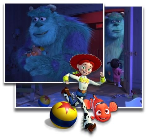 Boo, the pint-sized heroine of Monsters. Inc. has quite the toy collection in her bedroom. Among the toys she hands to Sulley, prior to their sentimental goodbye near the end of the movie, are Jesse from the Toy Story 2, the toy ball from Luxo, Jr. and a rubber squeak toy of Nemo from Finding Nemo. In this case, the appearance of Nemo predated the release of his own film by eighteen months.