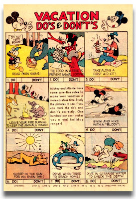For many baby boomers such as myself, comic books were a staple of childhood summertimes. Walt Disney's Mickey and Donald in Vacationland, published in 1961, celebrated the fun and joys of summer vacation. The book's title story featured a major character mash-up set in a Wicked Witch-created amusement park called "Vacationland." Featured in the story were Mickey, Minnie, Pluto, Donald, Daisy, Uncle Scrooge, Goofy, both sets of nephews, Gyro Gearloose, Grandma Duck, Gladstone, the Wicked Witch, Big Bad Wolf and Captain Hook.Other stories featured additional odd but inspired teamups. Goofy and Gyro go time traveling; Mickey helps the Seven Dwarfs solve their Diamond Mine Dilemma; and Chip 'n' Dale investigate Brer Rabbit's Bad Habit; Huey, Dewey, Louie and April, May and June help Gepetto test toys. And no Disney Dell Giant would be complete without a ample selection of activity pages. Here are a few fun samples: