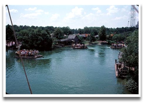 I was a cast member and worked at "Rafts" and "Canoes'" the summer when this picture was taken. Lines to get on the island was sometimes as long as 30 minutes and 3 rafts and a secondary dock on the island had to be used to keep up with the capacity. Remember there one only one park at the time and there were quite a few more people in the park at one time then.