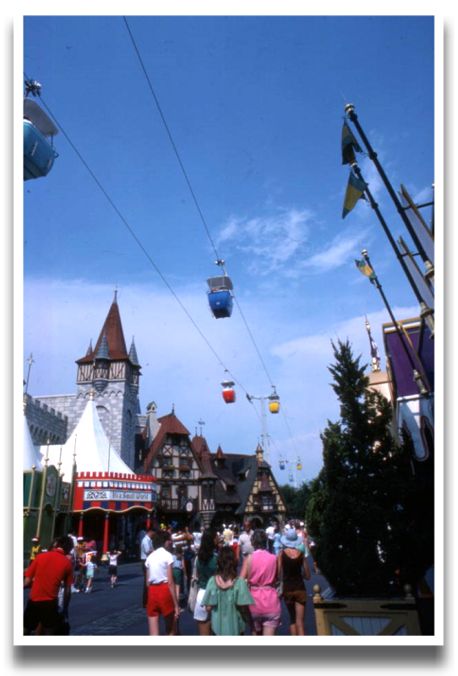 The Skyway was a Magic Kingdom mainstay during the park's first few decades, as demonstrated by this photograph from 1977. Steve Birnbaum provided this description in the 1988 edition of his famous guidebook: