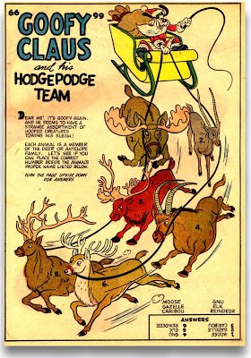 Not only did the giant Christmas issues of Disney Comics from that decade have entertaining stories, they were filled will numerous activity pages as well. Here's a matching quiz from the 1957 comic Christmas in Disneyland. You will need to turn your monitor upside down to check the answers. Hope you all have flatscreens.