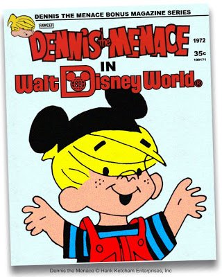 When I was a kid, I couldn't get enough of the Dennis the Menace comic books. I especially loved the giant-size special editions that featured the Mitchell family's numerous vacation trips. They traveled to locations such as Hawaii, California, and Washington D.C., but amazingly, they never ventured to the world's number one vacation destination--Walt Disney World. I decided to create my own little "what if" scenario in the form of a comic book that never existed, but sure would have been cool if it had. Unfortunately, I do not possess the talent to do anything beyond the cover.