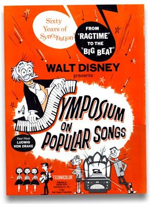 Symposium on Popular Songs sits in a relatively unvisited corner of Disney animation history. Rarely seen since its release on this date in 1962, it was finally made available last year on the Walt Disney Treasures Disney Rarities DVD set. It’s interesting for a number of reasons and, and it has some especially notable names in its credits.Disney’s marketing department released this short article as a part of promotional material sent out to theaters: