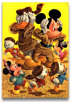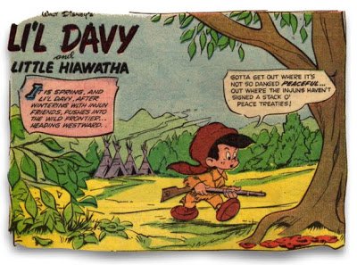Li’l Davy was featured in seven more Dell Disney comics before disappearing completely from Amercian comics following his appearance in the Dell Giant Daisy Duck and Uncle Scrooge Showboat in 1961. He costarred in those issues with the likes of Mickey, Goofy, Pete and the aforementioned Hiawatha cast. According to the online Disney comics index INDUCKS, he later appeared overseas in an Italian Mickey Mouse comic in 1964, then oddly, much later in a Brazilian comic in 1981, and then again in an Italian publication in 1990.