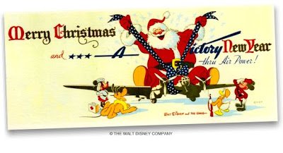 The studio Christmas card from 1942 is a real window to the past. Mickey, Donald, Minnie and Pluto are all active in the war effort, while Santa himself promotes Disney's heavily propaganda-themed feature Victory Through Air Power.