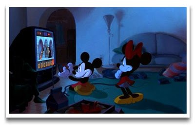 Runaway Brain’s modern age pedigree. After its King Kong-esque opening title is quickly clawed into tatters, the audience is met with a joystick-wielding Mickey totally immersed in a
