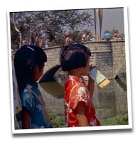 Upon arriving in Disneyland, we are taken on a leisurely land-by-land tour that alternates between the aforementioned spectacular aerial panoramas and more intimate guest's eye viewpoints. Nearly every corner of the park, no matter how remote, seems to be touched in some way by the camera's eye.