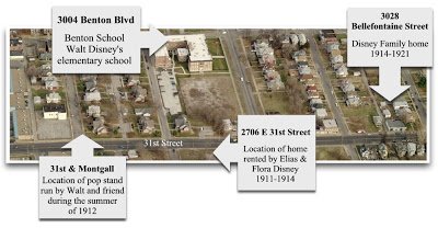 Walt Disney arrived with his family in Kansas City in the spring of 1911. Their first residence was a rented house at 2706 East 31st Street, in a neighborhood a few miles southeast of downtown. For the next twelve years, the very significant events of Walt's life would transpire within a twenty-block stretch of that particular boulevard.