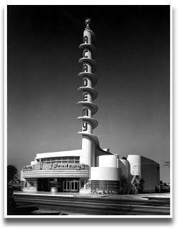 The Fox Academy Theatre opened on December 9, 1939, hosting the world premiere of the MGM film Another Thin Man. Despite its suburban neighborhood location, the Academy was a Hollywood showplace of sorts, frequently hosting studio test screenings and movie premieres. Its name and elaborate design related to the hope that it would serve as a venue for the annual Academy Awards ceremony, intentions that were unfortunately never realized.Many who grew up in the Inglewood area share fond memories of the theater. A contributor to the Cinema Treasures website recalled, "This picture palace was a truly grand and glorious place. I was awestruck by its towering spiral spire with the globe on top with sparkling stars...it was truly an amusement park for your mind to go there - thick plush carpeting, a lavishly decorated lobby and snack bar, and plush red velvet seats were an experience to remember, and as I recall, it had a golden shimmering satin waterfall curtain as well. This is the theater my family always went to for first-run blockbuster movies, and I fondly recall seeing DeMille's crowning achievement "The TEN COMMANDMENTS" there in the fall of 1956 in wide-screen VistaVision and surround-Stereophonic sound." The Academy ceased cinema operation in the mid-1970s and was converted into a church called the Academy Cathedral. It still exists to this day in that incarnation.