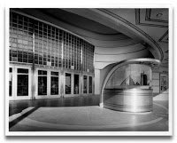 The Academy was designed by famed movie theater architect S. Charles Lee. Well known for his Streamline Moderne designs, Lee was responsible for many of the more famous movie palaces in the Los Angeles area. The Academy featured numerous elaborate trappings; a sleek and streamlined ticket both, a stunning glass block entrance and detailed etched glass panels, just to name a few. Lee also created the Los Angles Theatre from which Imagineers took inspiration when designing the Hyperion Theatre in Disney's California Adventure. In the early 1940s, Lee did a conceptualization for a proposed theater at the then newly constructed Walt Disney Studios in Burbank. We'll visit that Lee design and its ultimate realization in a future installment of Disney's Hollywood. Stay tuned.Photo Credits