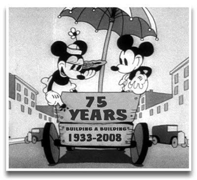 In their 1987 book, Too Funny for Words: Disney Greatest Sight Gags, Disney Legends Frank Thomas and Ollie Johnston noted, "The first Mickey films had been developed so carefully in story that there was really no need for dialogue, other than an occasional 'Yoo-hoo" from Minnie (Building a Building, 1933)." The citing of Building a Building was by no means a random choice on the part of these two Studio veterans; this early Mickey Mouse black and white classic is an amazing and wonderful combination of story, music, character and pratfall comedy, orchestrated by Dave Hand in what was his first directing assignment for Walt Disney. It was released seventy-five years ago today on January 7, 1933 and richly deserved the Academy Award nomination it subsequently received.