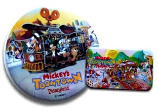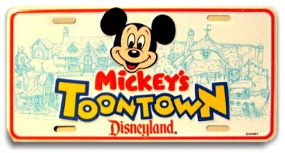 Continuing our celebration today of the 15th Anniversary of Mickey's Toontown at Disneyland, here are a few fun souvenirs from that land's earliest days. Transportation is one of Toontown's key themes so a license plate is an especially appropriate souvenir.