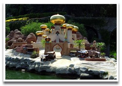 When Disneyland opened in July of 1955, the Canal Boats of the World took guests on a generally uninspired tour of a featureless landscape. That changed during the summer of 1956 with the addition of a series of elaborate miniature set pieces that became known as Storybook Land. While scenes from Snow White and the Seven Dwarfs and Cinderella were among the original designs, additions have been made over the years, such as this beautiful rendition of the Sultan's Palace from Aladdin.