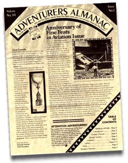 Since posting the initial two entries in our Tales from the Adventurers Almanac series, I've had a number of readers inquire as to how one went about receiving this fun and interesting newsletter. I'll leave the explanation to Correspondence Committee member Bernice Smythe-Fenton. This appeared in Adventurers Almanac Volume No. 56, Issue No. 8: