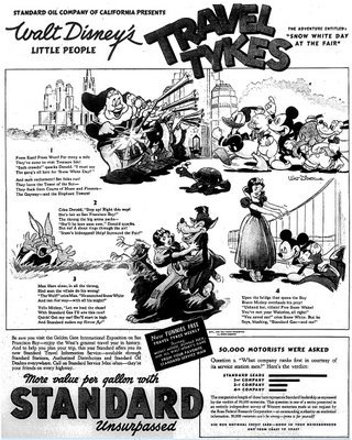 In 1939, Walt Disney partnered with the Standard Oil Company to produce an advertising campaign featuring many of the studio's well known cartoon characters. The commercial short The Standard Parade was perhaps the most famous and lasting component of that campaign, though the campaign extended to other media as well. Little seen since their original publications were newspaper ads that featured rhyming storytelling not altogether far removed from the Good Housekeeping magazine pages that had been popular throughout the 1930s.