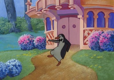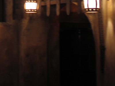 Continuing from the base of George's Tower, and proceeding further into the show building, one comes across an inauspicious set of steps which lead up to a door. On the "show scene" side of the door is the famous dog, keys dangling from mouth. This door is George's Door, and it must be closed at all times. If George's Door is left open, the ride should not be powered up in the morning. This is fine for show quality reasons in the morning, and building maintainence and Imagineering know well enough to shut it behind them. However, sometimes, the door begins the day shut and will, in the middle of the day, mysteriously creak open.... and if George's Door is open, it is said, a serious breakdown is sure to follow. As you can imagine, if the light is on in George's Tower
