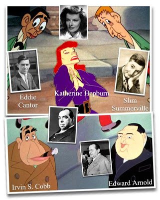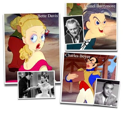 Three appearances are notable in the fact that the personalities are featured in roles they were famous for when the cartoon was released in 1939. Bette Davis is garbed as her character from the 1938 film
