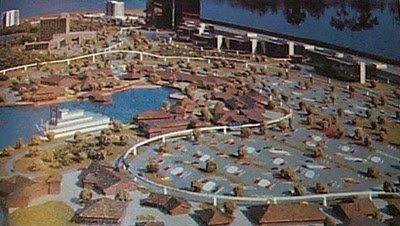 A transient population of 30,000? A peoplemover through a downtown area of shopping and dining? Commercial highrises? Monorails? Modern homes situated in grassy, pastoral suburbs along cul-de-sacs instead of grids? Haven’t we heard this before? That’s right, it’s nearly every component of Walt Disney’s Progress City – only spread out across a huge area instead of the compact circle Walt Disney was envisioning in 1966. Disney was building a community – a real community – or at least trying to.