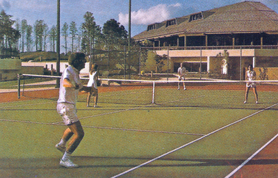 Go downstairs and walk through her pro shop and adjoining offices, and feel the 1970’s still alive down there. Go find the square patch of grass where once there was a pool, the Clubhouse overlooking her tranquil blue water. Go to the tennis courts, not moved since then, and imagine you’re winding up for a swing in the heart of the river and lake country of Central Florida, out away from it all.