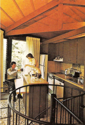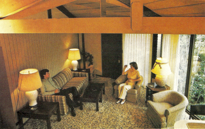 And an earlier 1977 magazine: “The Villas, expected to yield energy savings of 50 percent with their unique design, each have a 720-square-foot living, dining, and kitchen area and two bedrooms, one of which can be combined with the adjoining Villa. Designed for family vacations, meetings, seminars, and executive conferences, the Villa units will be arranged so that as many as four bedrooms can be rented by one tenant.”
