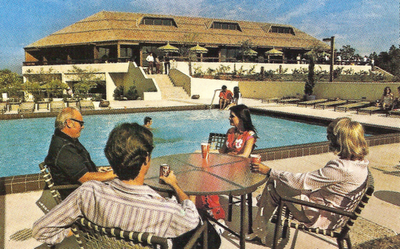 By 1976, The Lake Buena Vista Club was hosting brunch. On Mondays, one could enjoy a Night of Wine & Roses – wine sampling at the Village Spirits, a rose from the Flower Garden, then a romantic, silent flote boate cruise to the Club for dinner. Tuesdays was Dinner for Tue, with a candlelit Club dinner followed by a moonlit cruise. Sundays brought about a Champagne Brunch with stops at Village Spirits, a flote boate cruise to the Club, and a brunch with eggs benedict and roast beef. And Disney was building again in Lake Buena Vista – this time to the West of the Lake Buena Vista Club, East of the Treehouse Villas, nestled comfortably between four golf holes – the 10th and 11th to the east and north, and the 17th and 18th to the west and south. Because of this, these became known as the “Fairway Villas”.