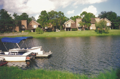 Since the earliest days of the Lake Buena Vista Club, a canal wrapping around its north face had always widened into an elongated dewdrop of a lake, called Club Lake. And in 1978 a series of little buildings began to spring up along the shores of Club Lake, on the shore near the Club and across from it, in what would turn out to be Lake Buena Vista’s final growth spurt in over a decade… The Club Lake Villas.