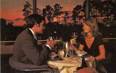 It’s still there if you know where to look. The back of the Lake Buena Vista Club still faces a shimmering lagoon… maybe not the one that diners there would’ve enjoyed in 1980, with stands of cypress and moonlight playing across the waves. It faces a golf course, a parking lot, and the back of the House of Blues. But she’s still there, waiting for you, a part of history which has escaped detection, demolition. Walk through her and see if you can guess where that couple sat long ago sipping wine, silhouetted by a 1975 Florida sunset, while a string quartet played their tune.