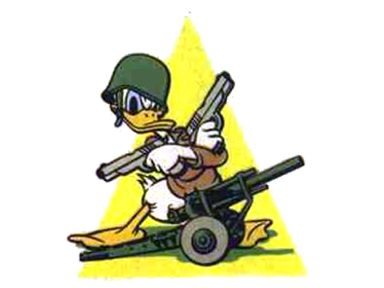 In honor of the Memorial Day holiday, we are presenting a special edition of our very popular 2719 Hyperion Exhibition Hall series Service with Character: Disney World War II Insignia. Today we feature twelve emblems collected from 1944 issues of Walt Disney's Comics and Stories.