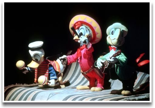 Decades before they appropriated the River of Time at EPCOT, Donald, Jose and Panchito first performed at Walt Disney World in the rather short-lived Fantasyland attraction, The Mickey Mouse Revue. The audio-animatronic trio performed their namesake song as part of the production. After a nine-year tenure in Florida, the show was exported to Tokyo Disneyland where it enjoyed a much longer lifespan, closing just recently in 2009.