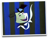 In a very quick bit of theme park to motion picture synergy, an element of the Haunted Mansion is referenced in Disney's 1997 animated feature Hercules. During the musical number I Won't Say (I'm in Love), the Muses take the forms of various sculptures as they provide background vocals for Meg's performance. At one point in the song, they are featured as a set of marble busts that bear an uncanny resemblance to a similar and rather famous set piece from the Haunted Mansion's cemetery.