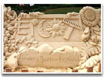 Fun in the Sun is one of the prominent themes of the 2008 International Flower and Garden Festival at Epcot. In that vein, Future World plays host to this elaborate and very detailed sand sculpture.