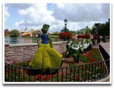 Another great vignette from Epcot's 2008 International Flower and Garden Festival. Bordering the World Showcase Lagoon near the Germany pavilion is this flower garden that features beautiful horticultural incarnations of Snow White and the Seven Dwarfs.